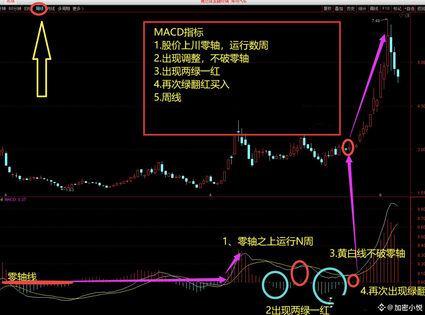 这位小伙,只用一招就精准判断顶底,那就是MACD顶底法*,他说用这一招,短短一年多时间翻了7倍,今天我将这一绝招分享给大家,希望能有借鉴参考的地方,建议收藏!其实,这一招就是短短的四句口诀,上车为“前大后小,金叉就搞”,下车为“前高后低,放量就跑”