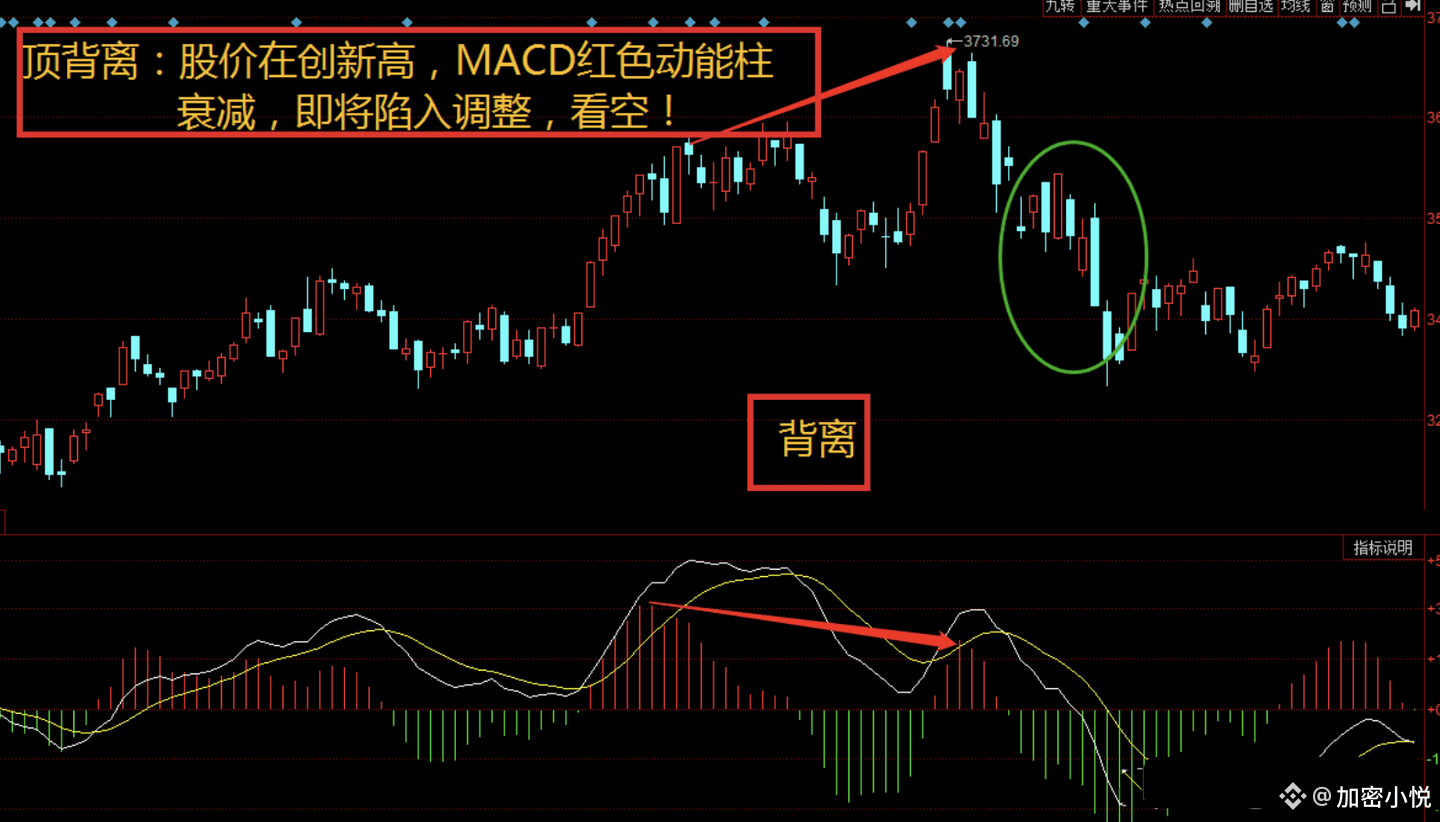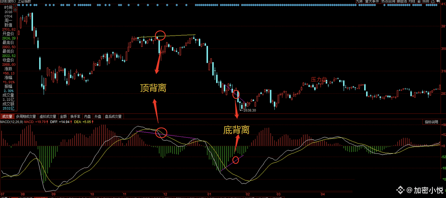 为了让大家更加方便的了解,我给大家已经整理好了图文的解析,配合阅读,将能达到事半功倍的效果,MACD附有指标之王的美称,不管是任何技术,都离不开MACD指标的配合使用,用量能顶底背离判断行情的转折点,可谓是起到了画龙点睛的作用,不管你是新手还是老股民,一看就懂,现学现用,大家可以收藏起来!