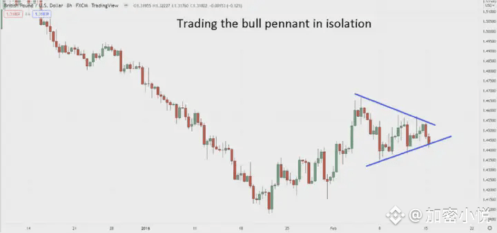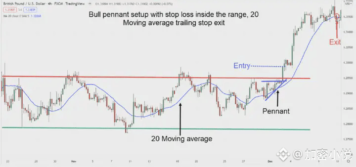 鉴于牛市三角旗形态是一种趋势延续的模式,因此已经默认排除了那些不利于此类设置的区间市场环境。
