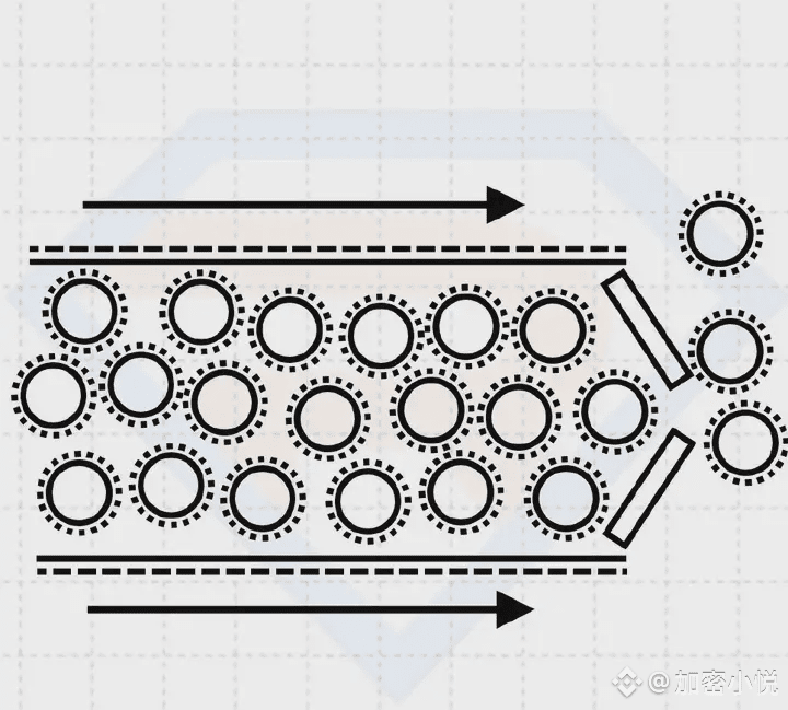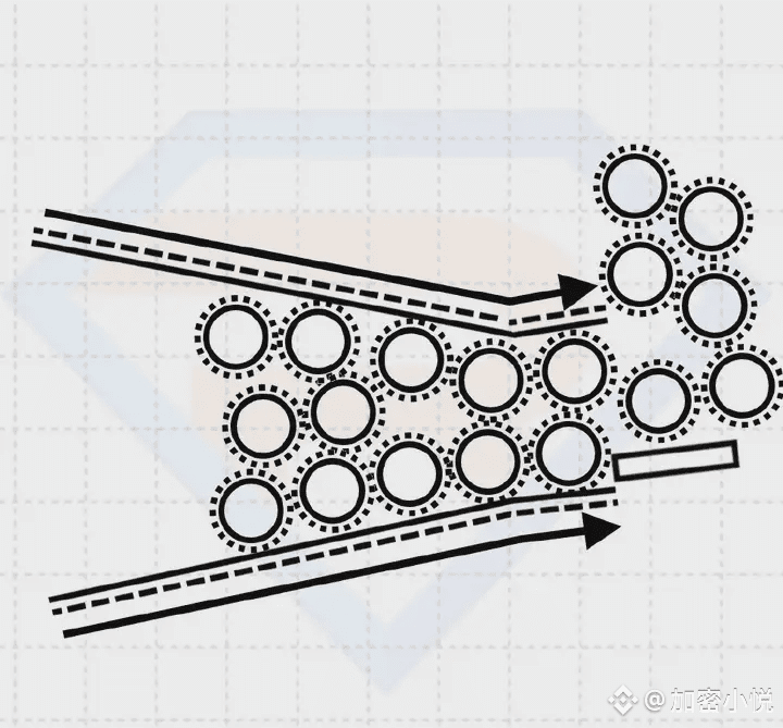 现在,假设会议室中的每位成员都希望离开,然而,在他们朝向出口的行进过程中,走廊逐渐变得狭窄,而出口的门却相对较小,如下图所示。