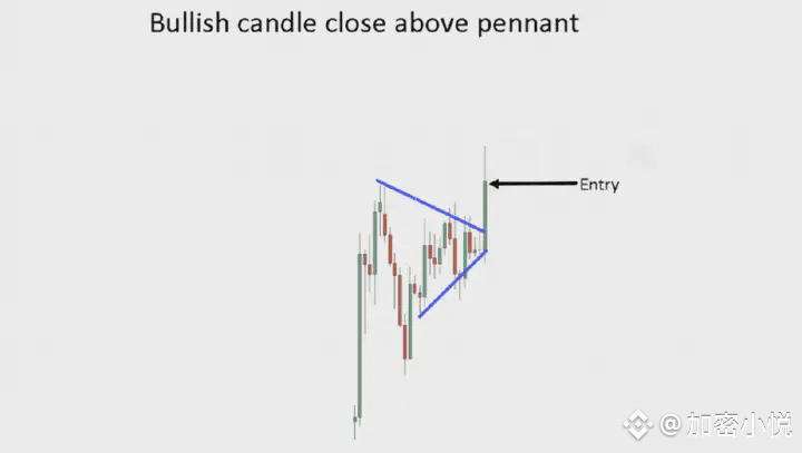那么解决方案是什么呢?等待看涨蜡烛收于三角旗线上方,如下图所示。