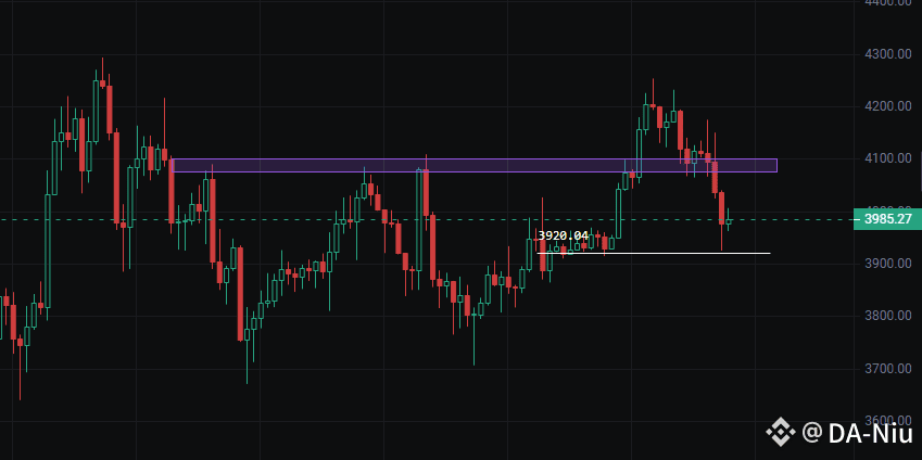 以太夜间4150阻力未破遇阻回落,早盘关注3920支撑不破看反弹,上方关注4085阻力突破站稳上方将止跌走反弹延续,否则一旦跌破3920将插针测试3850附近支撑。