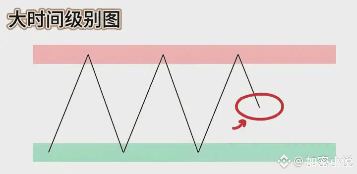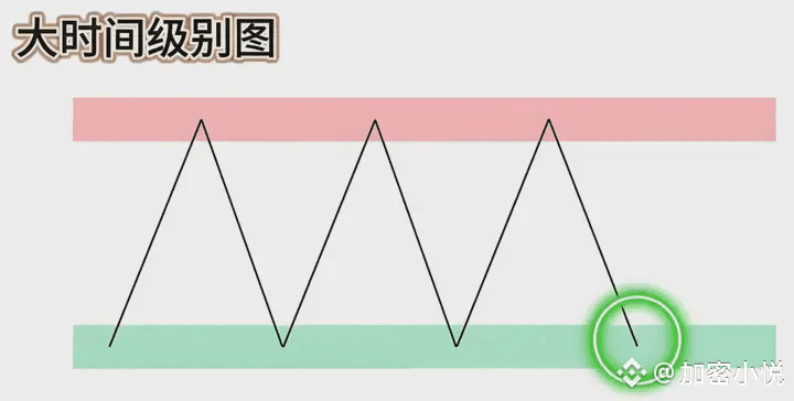 先看大时间级别图,核心是确认“价格是否在横盘震荡”。能明显看到价格在一条支撑位和一条阻力位之间来回波动,这就是明确的横盘区间。