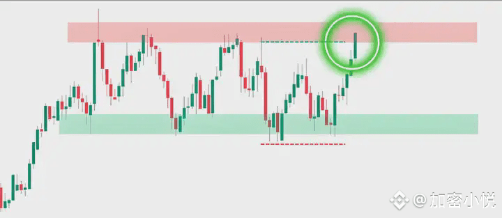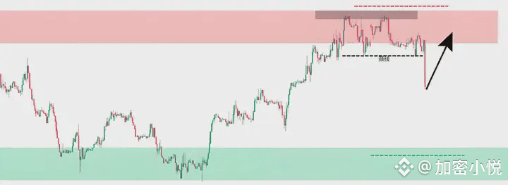 当价格涨到横盘区间的阻力位,逻辑是反过来的——找“上升趋势破坏”信号做空。