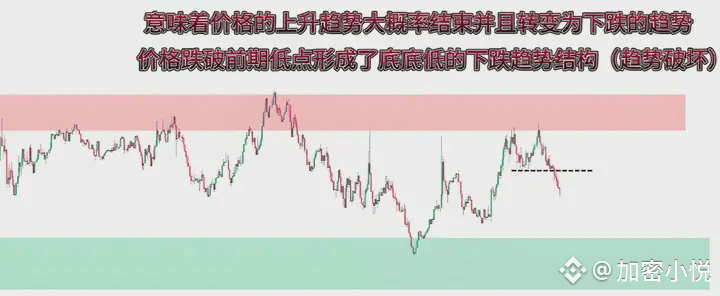 为什么要等“趋势破坏”?因为价格跌到支撑位时,在入场级别里大概率是“下跌趋势”(比如形成“顶顶低、底底低”结构),直接买容易抄在“下跌中途”。
