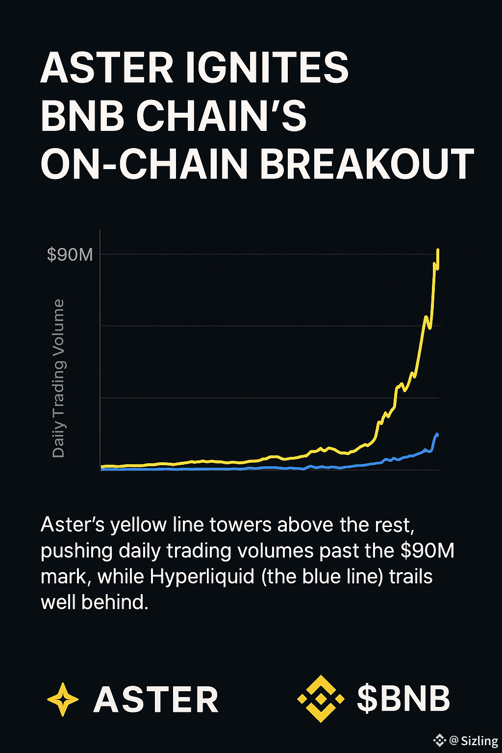Just look at the chart — Aster’s yellow line soars past $90M in daily trading volume, leaving Hyperliquid (blue) far behind. This isn’t a random spike — it’s the outcome of consistent liquidity, strong user onboarding, and a product designed for traders who want real speed and transparency without CEX friction.