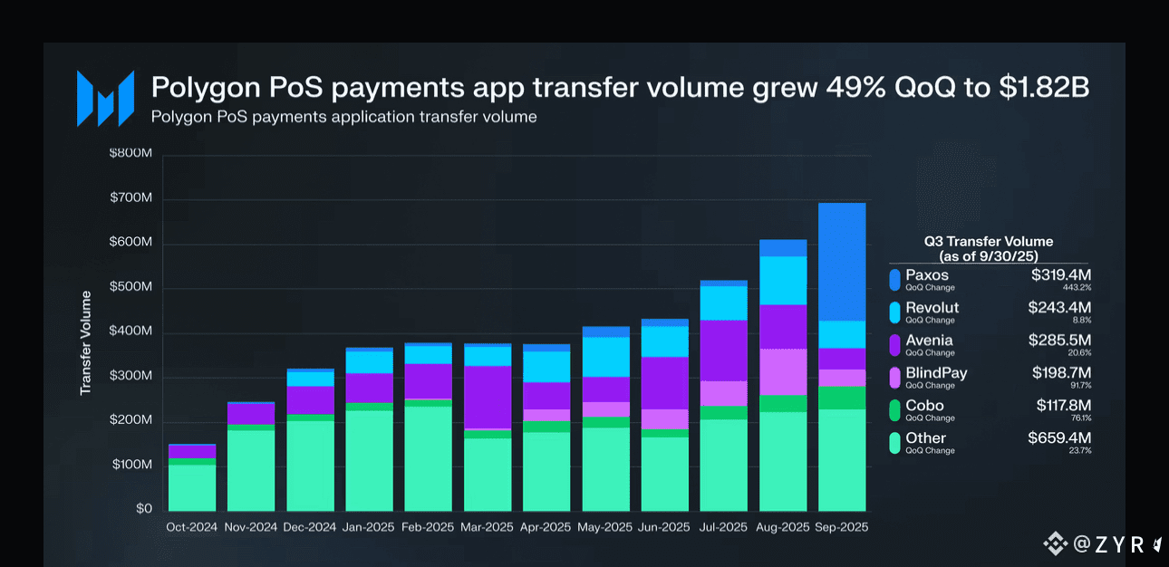 Meanwhile, the payments layer is not simply expanding in volume. It is becoming structured. The $1.82 billion in transfer activity across fifty different applications did not come from a single dominant provider. It came from coordinated distribution across multiple services. This indicates that Polygon is not dependent on one flagship success story. Instead, it is building an economy with many operational nodes. This is a pattern associated with resilience.
