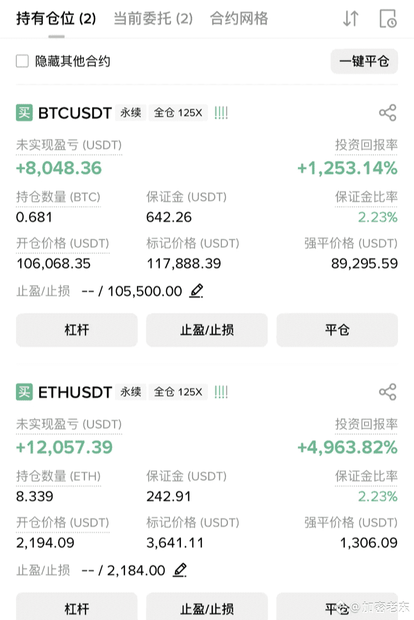 效果:2021 年以太坊从 1800 刀启动,按此法加仓 3 次,最终从 10 万本金赚到 120 万,加仓部分贡献了 70% 的利润。