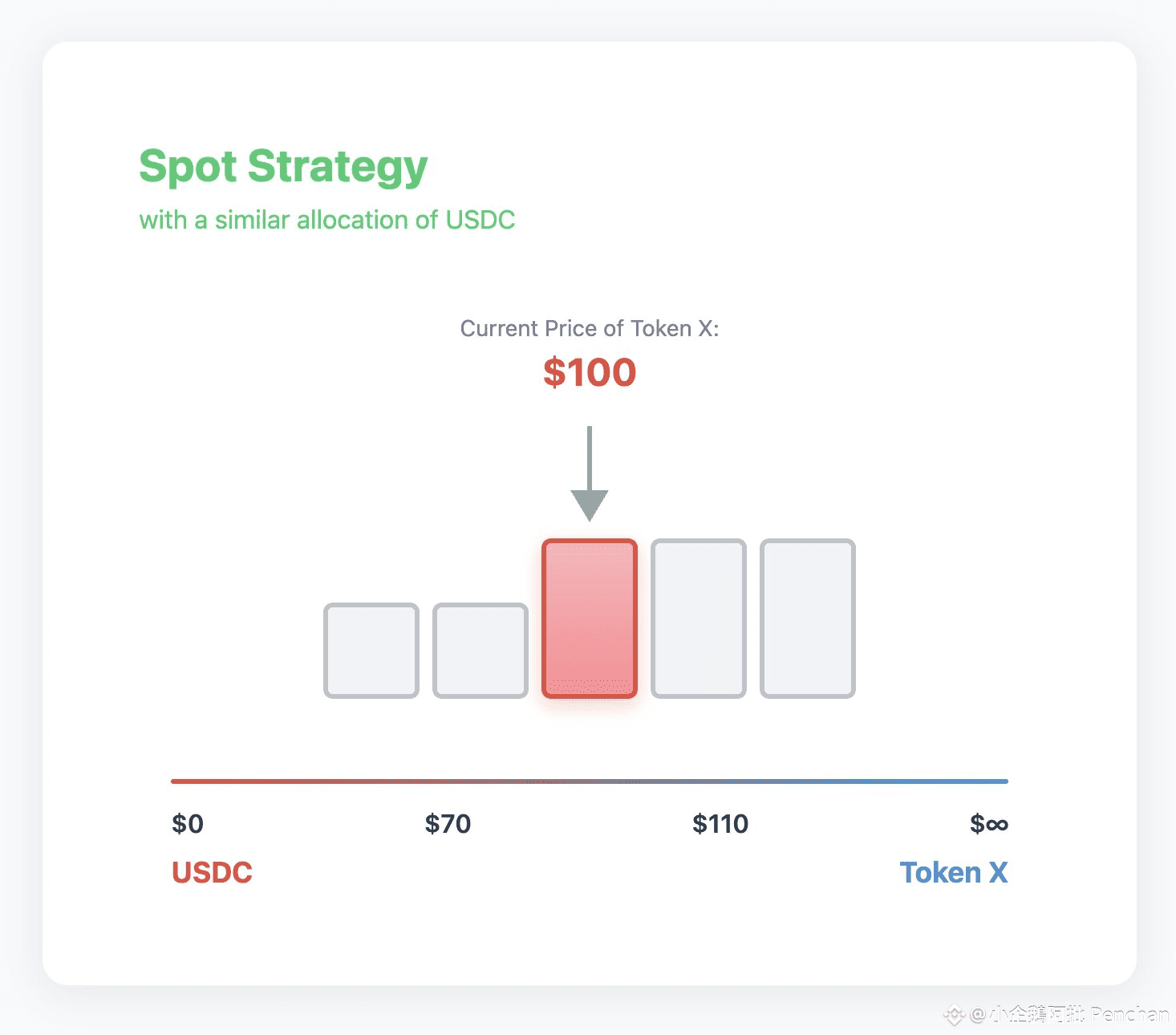 - 現貨策略:指定範圍內均勻分布,同 CLMM 的矩形分佈,還可設置為不對稱形狀預留上漲/下跌空間