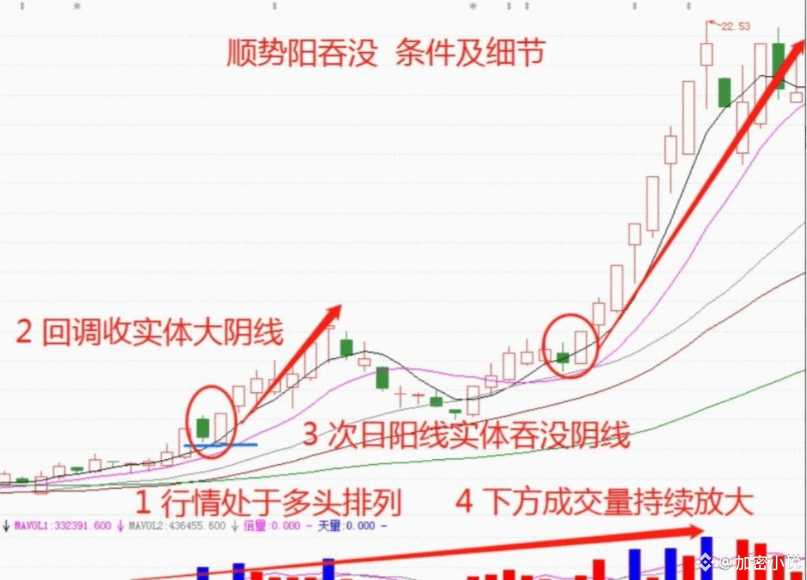 炒股,真正能够赚大钱的,绝对不是低买高卖的人,而是在高位买进再到更高位卖出的人,这才是真正的强者恒强,因为只有拉出空间的行情才能彻底的洗掉浮动筹码,“顺势阳吞没”的形态就是典型的强者恒强的确认信号,如果你还不会识别真正的强势股,下面的这个形态认真领悟,直到可以融会贯通为止。