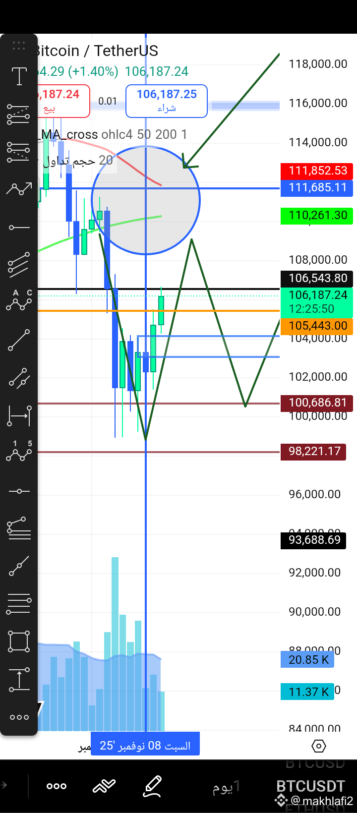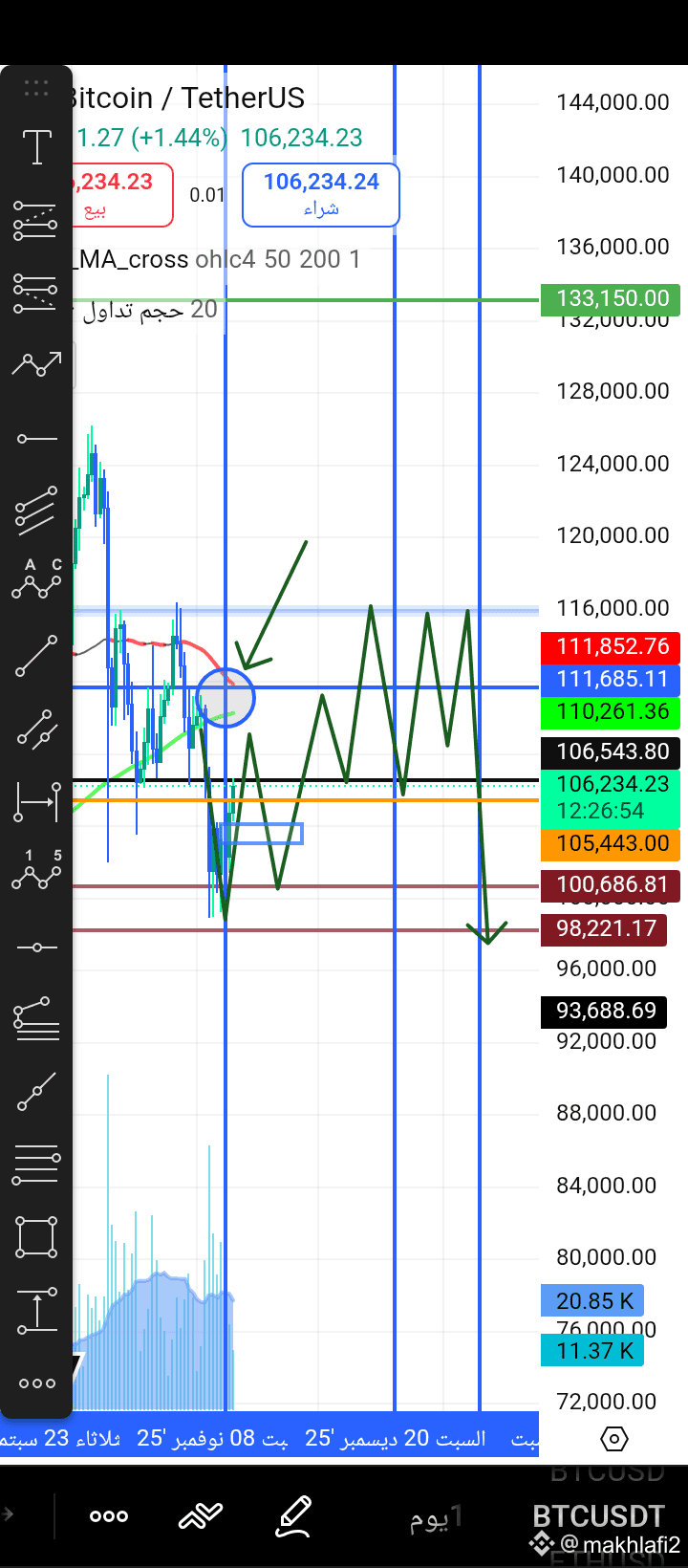 والآن أقولها بوضوح: السوق إيجابي للعملات، والبتكوين يصحح صعودًا إلى 116، ولا يوجد أي تغيير في هذه النظرة. وتجد اني حسبت حسابها وان من الممكن اذا حصل الشي السلبي العوده الي 103 لاختبار الموفينج الاسبوعي عادي جدا