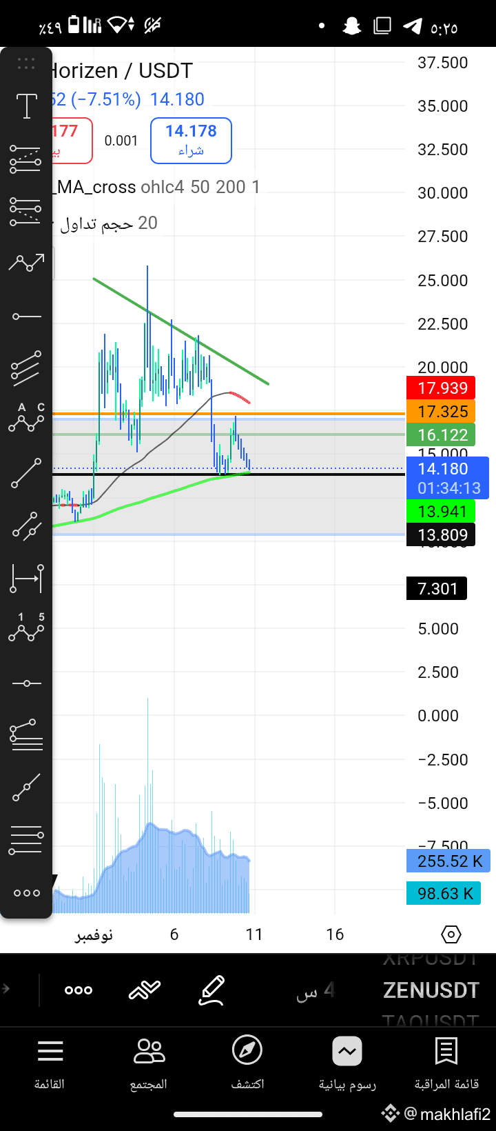 🔻 الإغلاق تحت 13.8 = الأفضل التخفيف أو الخروج في حال كنت مشتري.