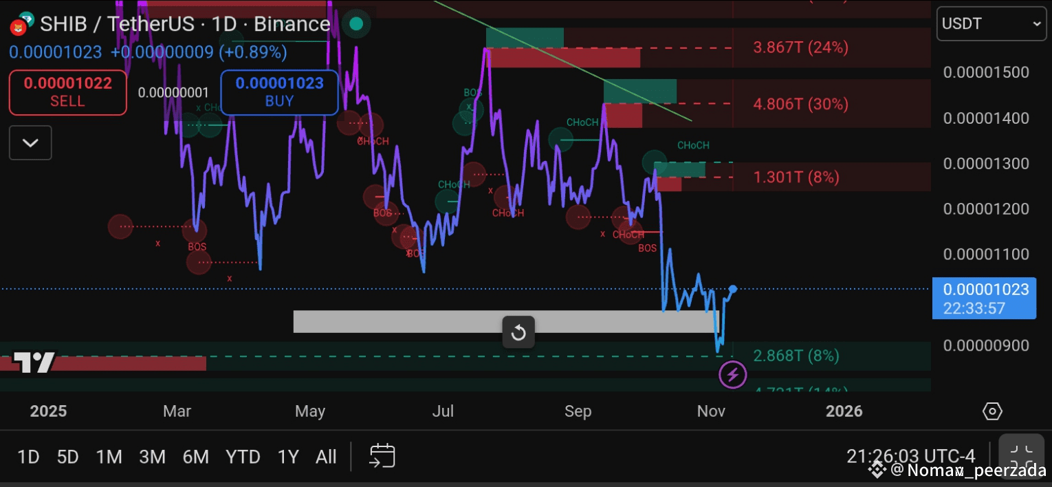 Shiba Inu (SHIB) is different because its price is stable but there are deeper problems. SHIB is trading near short-term resistance at $0.0000106 and it has recovered a bit from lows around $0.0000090 in October. This small increase doesn't mean much because it is based on speculation instead of real progress.