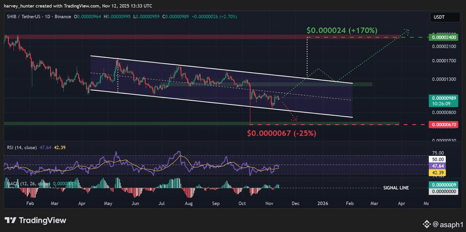 Si SHIB logra cruzar ese umbral de resistencia clave cerca de los $0.000012, podríamos ver un rally brutal de hasta un 170% que lo llevaría a los $0.000024. ¡Imagínate! Ahora, para un objetivo más loco como $0.0001, ahí sí necesitaríamos que Shibarium despierte de verdad y empiece a tener tracción real. 🤯 Si no logra romper, la caída podría ser dura, un 30% menos hasta la zona de $0.0000067.