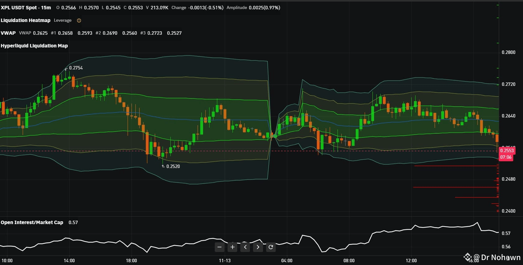 Plasma sits deeply oversold after a heavy 24-hour cut, but the underlying structure shows the type of bottom-side positioning that often precedes short squeezes. Open interest remains extremely elevated relative to market cap, and funding sits mildly negative — a combination that implies traders are aggressively leaning short, giving the market fuel for forced buying if price begins to rise.