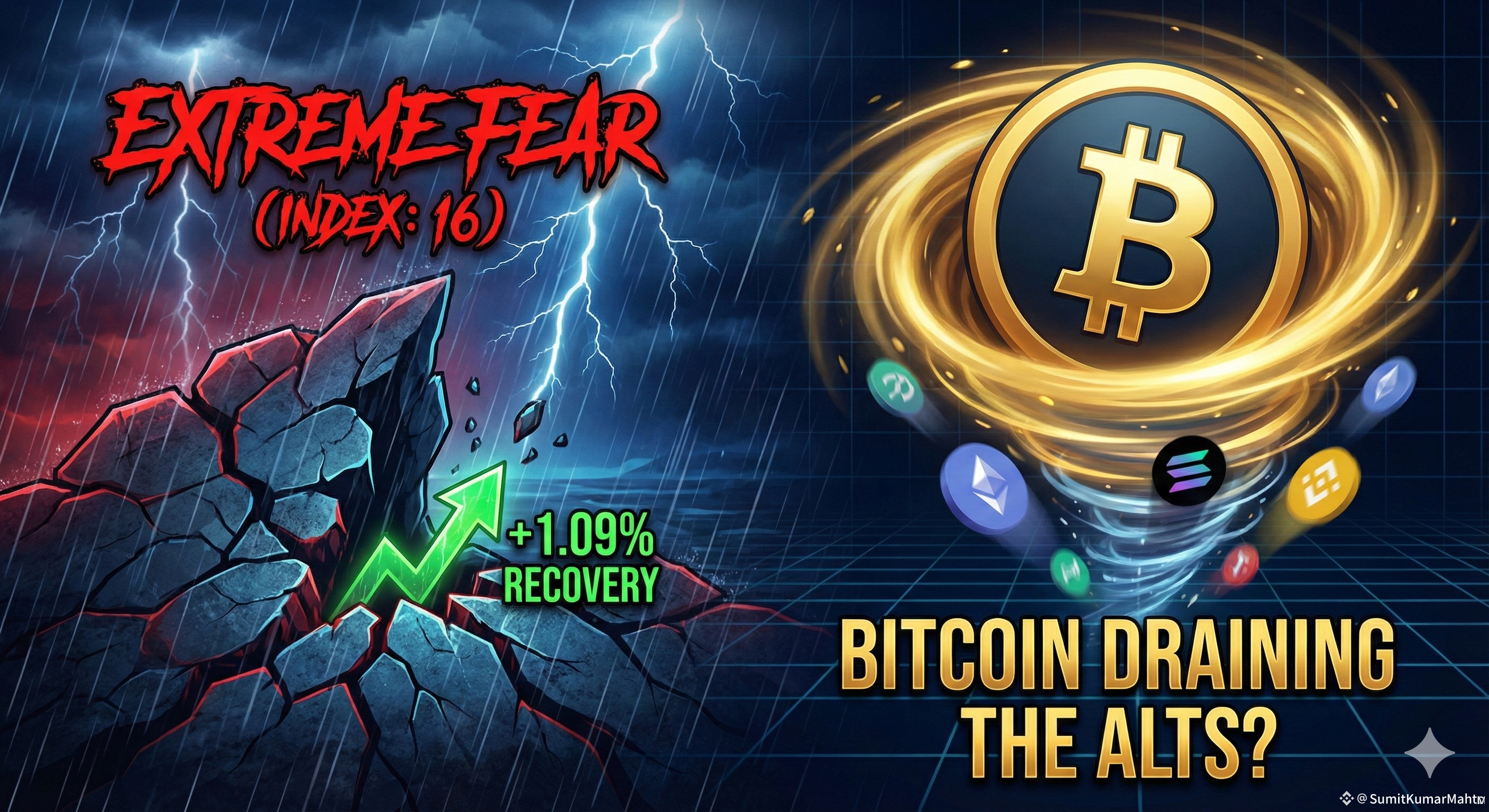 The market showed a light recovery today, with the Total Market Cap pushing up to $2.93T. However, don't let the green candles fool youтАФsentiment is still deeply shaken. The Fear & Greed Index sits at 16/100 (Extreme Fear), indicating that traders are extremely cautious and shifting capital into "Safe Zones."