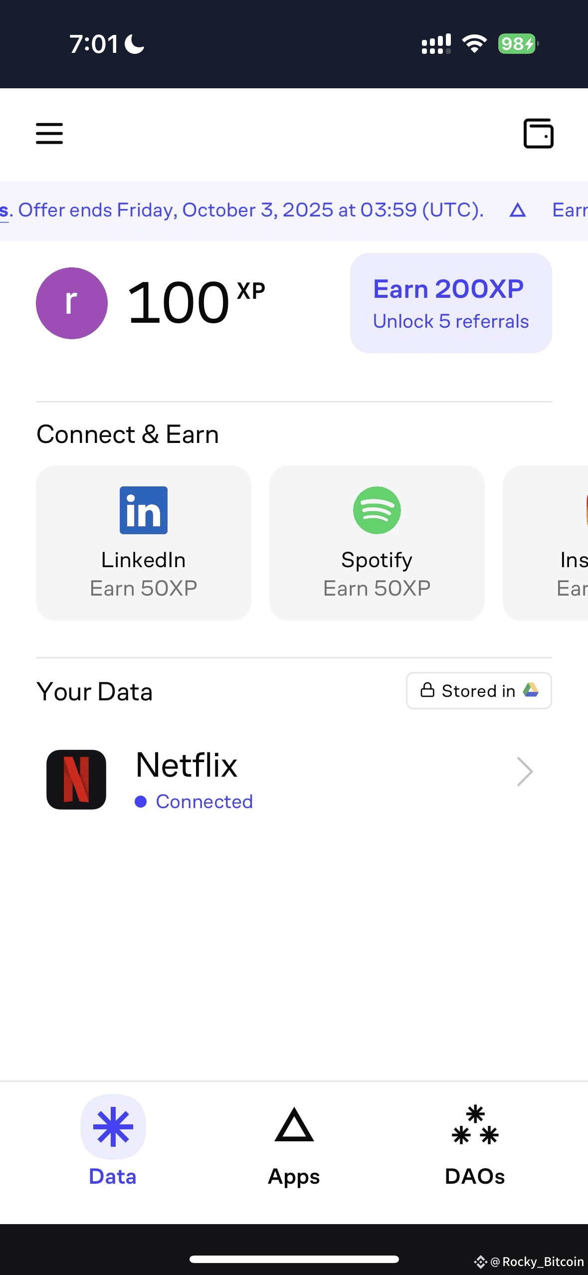 整体来说,Vana 目前还属于早期试水阶段,定位在数据驱动的社交 + Launchpad方向,老大的顾问身份,值得重视起来,但具体能不能跑出来,还得看积分最终的价值和 DAO 生态能不能建立起来。我个人目前先拿邀请码进去薅积分,顺手观察社区氛围。没有成本,万一它真走DataFi那条路,至少我们没错过第一步。🧐