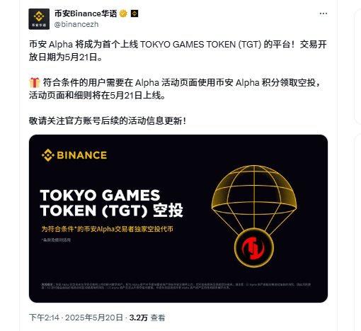 After talking about MapleStory, let's continue to talk about Binance's latest Alpha. The TGT project will start issuing airdrops tomorrow. If nothing unexpected happens, you will get 100U, haha!