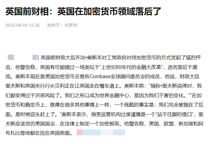 Gossip time! The former British Chancellor George Osborne, who now works for Coinbase, recently jumped up and scolded that the UK can't even see the tail lights in the cryptocurrency field, specifically calling out the current Chancellor Hunt and the Bank of England Governor Bailey as the slow-driving duo. We in the crypto circle love to see such infighting among our own, come on! Let's gossip!