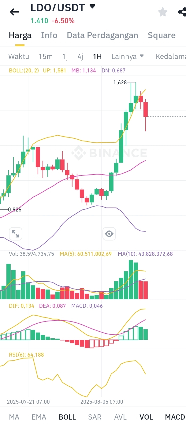 RSI(6): 64.188 (approaching overbought, but not extreme yet).