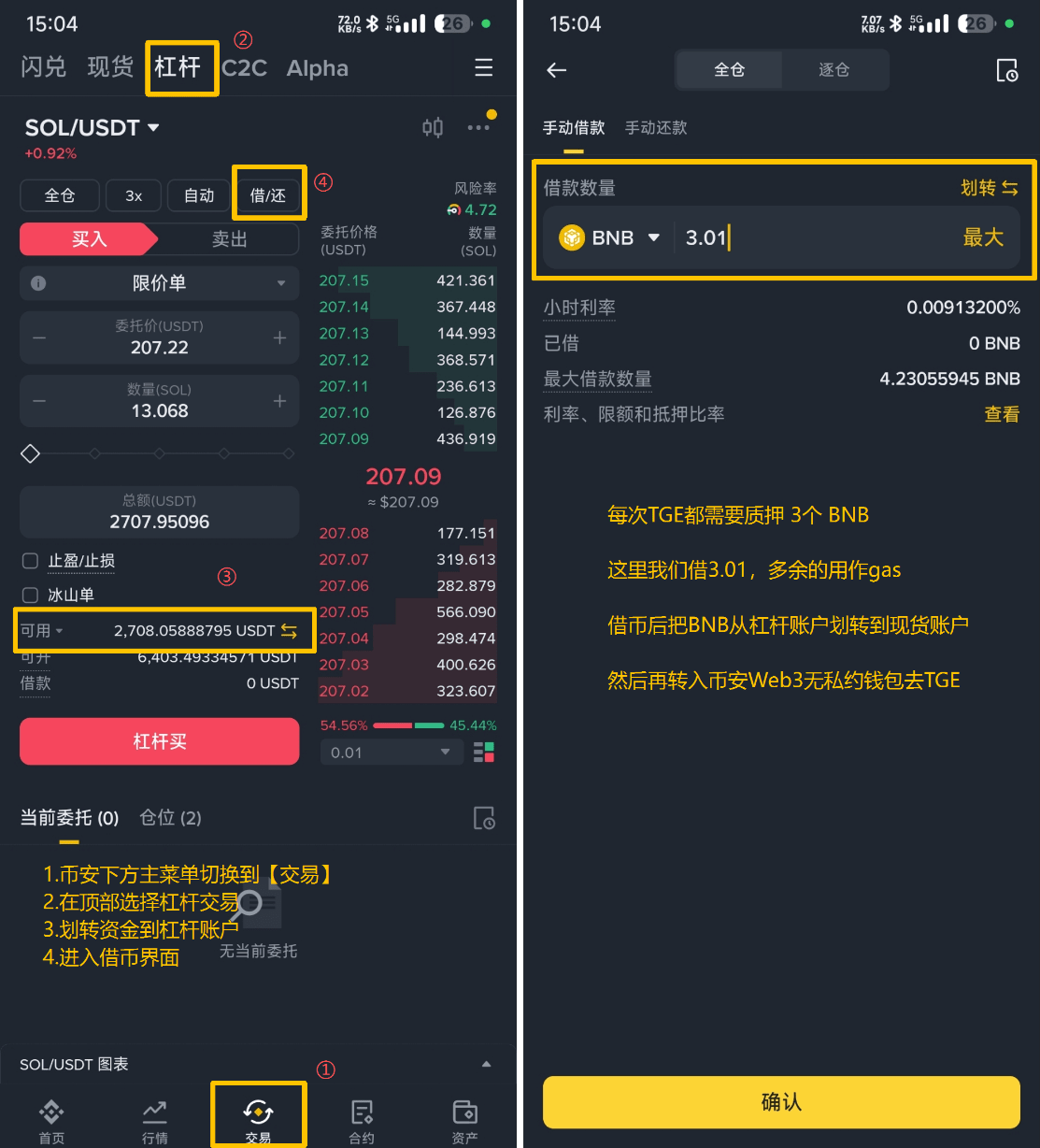 The core idea of this strategy is to use leveraged borrowing to obtain BNB, participate in the TGE of the Web3 wallet ecosystem, while minimizing your capital risk. This approach allows you to obtain participation qualifications without purchasing BNB, only incurring short-term borrowing interest costs.