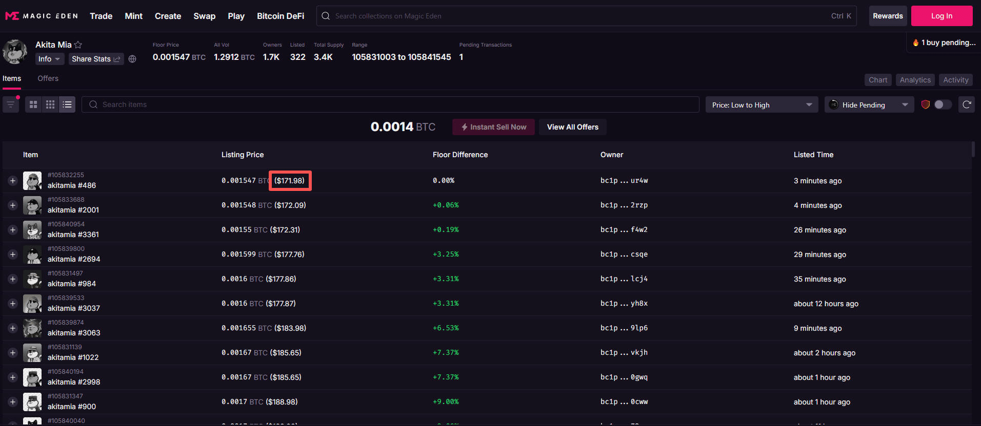 Akito Mia market link: https://magiceden.io/ordinals/marketplace/akitamia?status=%22magic_eden%22