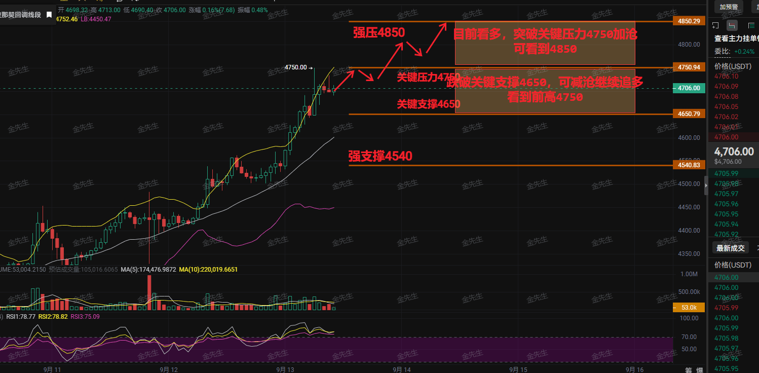 Clear resistance: 4750 is the key to break through, once it stands firmly with volume, the next target is the previous high of 4850.