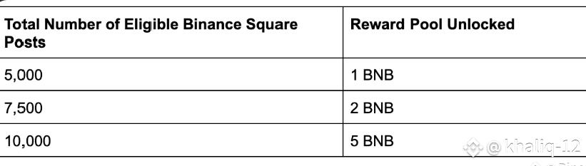The final rewards pool is determined by the total number of eligible Binance Square posts submitted during the Activity Period, as per the table below.