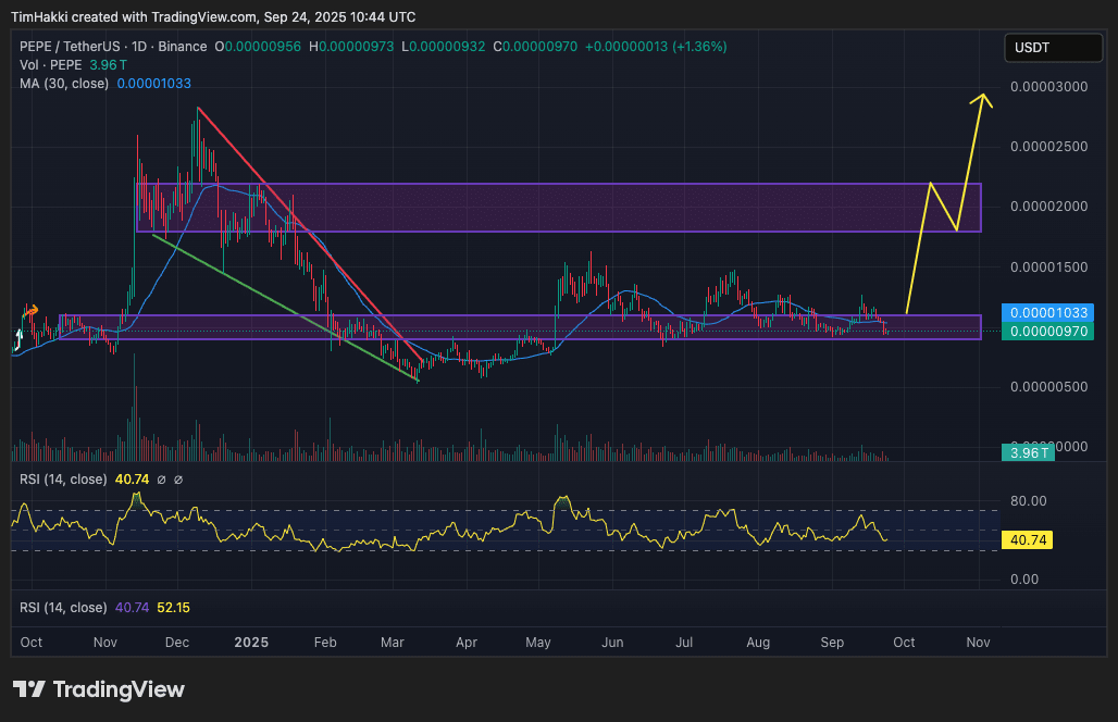 This is where it gets spicy. The current price of PEPE is around $0.000009708. Yes, it is in a slight decline, but the experts at Perplexity AI do not believe it will last long, as the token has very strong support at this level.