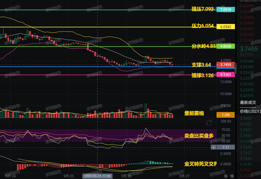 Brothers pay attention! The AI track star project 0G is facing a life-and-death test! The current price is violently fluctuating in the critical range of 3.64-4.85, with trading volume shrinking to freezing point, and the golden cross turning into a death cross releases a dangerous signal—this is the most terrifying sign of a trend change before the storm! The upper limit of 4.85 is the dividing line between bulls and bears, 6.054 is the resistance level, and 7.093 is an even stronger ceiling! The US PCE data at 20:30 tonight will directly determine whether 0G breaks through the abyss of 3.12 or surges past the major threshold of 6.0!