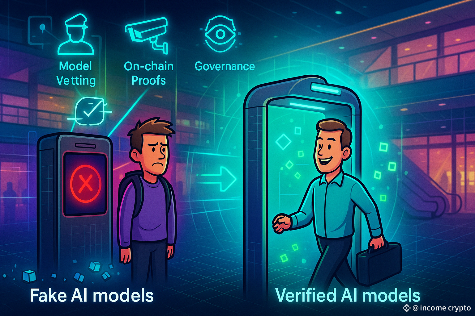 Stakers → tokens lock karke marketplace ko secure रखते hain, in return milते hain rewards. Governance → token holders hi decide karte hain kaunse AI models authorize होंगे. Builders → verified status ke लिए token stake करना पड़ता hai, jo ecosystem demand create karta hai. Ekदम “mall ke shop license” jaisa system – बिना license shop open नहीं हो सकती.