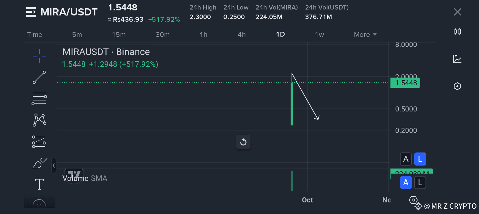 The candle speaks for itself: MIRA spiked from a low of just $0.25 to a high of $2.30 in one day. Thatโs not a normal market move โ thatโs a parabolic explosion. A 5x return in 24 hours shows how much hype, speculation, and volume poured into this asset.
