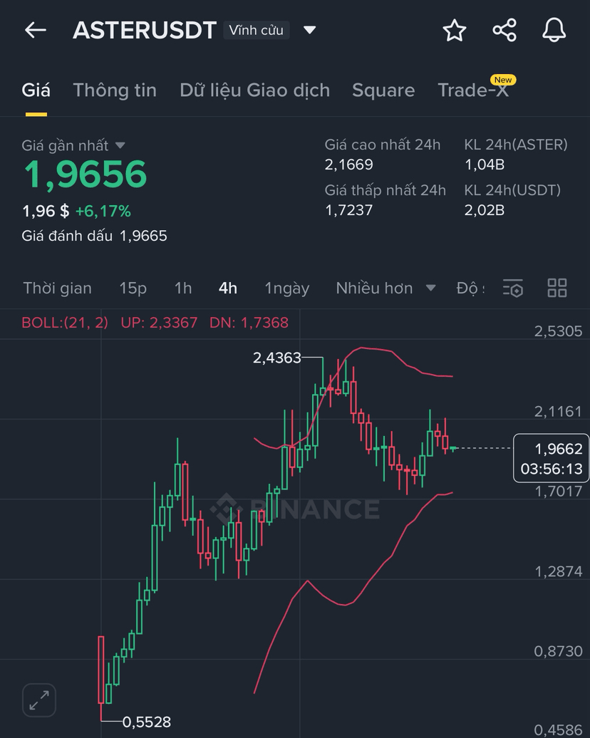 ASTER is currently trading at 1.9547 USDT and has just broken through an important resistance zone, creating a positive signal for the short to medium-term price trend. The current context shows that buying pressure still dominates, especially when the long/short ratio on contracts is at a high level and continuously maintains above 3.5, with even the group of professional traders reaching over 4.2–5.3, reflecting strong confidence in the upward trend.