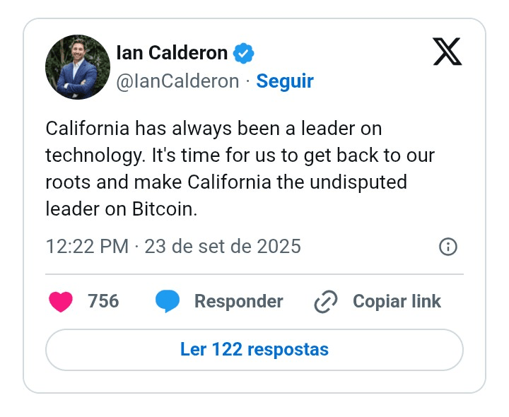 “California has always been at the forefront of technological innovation. The time has come to reclaim that role and make the state the world's leading reference in Bitcoin.”