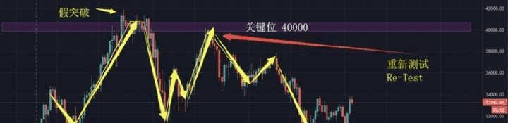 After the price breaks through 40000 USD. No longer creating new highs, then immediately turns back down, followed by a rebound, and returns to the high of 40000, it only took 5 days in total, which is a very favorable backtesting example.