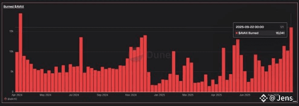 Avalanche just recorded its largest token burn week since March 2024, with more than 16,000 $AVAX permanently removed from supply through transaction fees.