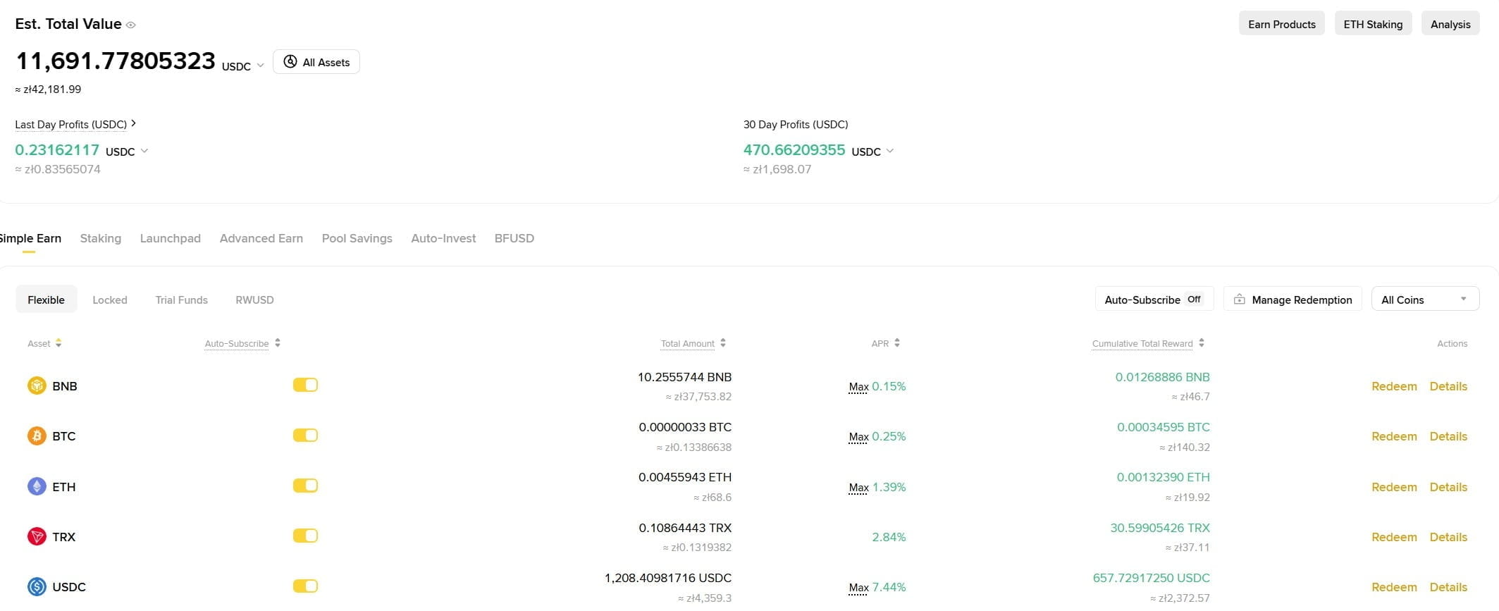 Binance is the largest cryptocurrency exchange in the world, operating globally and also available in Poland. The platform offers various ways to earn passively - from flexible savings to staking, to more advanced financial products.