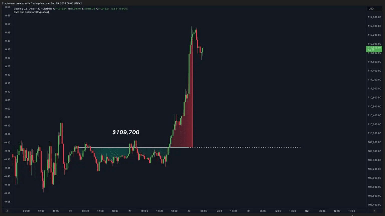 But here comes the part that no one can ignore, and it's key to understanding the immediate future. Analyst Crypto Rover gave us the alert: this last jump left a "gap" or "void" in CME futures unfilled, just around $109,700. 🚨 For those who are new to this, the CME futures market works differently, and when Bitcoin moves very quickly while that market is closed (like on the weekend), it leaves a "vacuum" on the chart. The theory that almost always holds true is that this gap acts like a magnet and the price comes back down to fill it before continuing on its path.