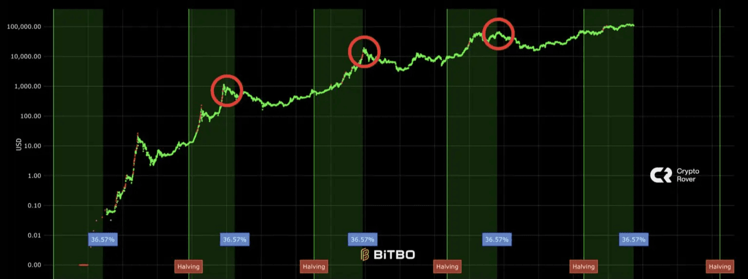 But on the other hand, the same Rover gives us a weighty warning: looking at long-term graphs and how Bitcoin behaves after halving events, we might be approaching the peak of this cycle. 🤯