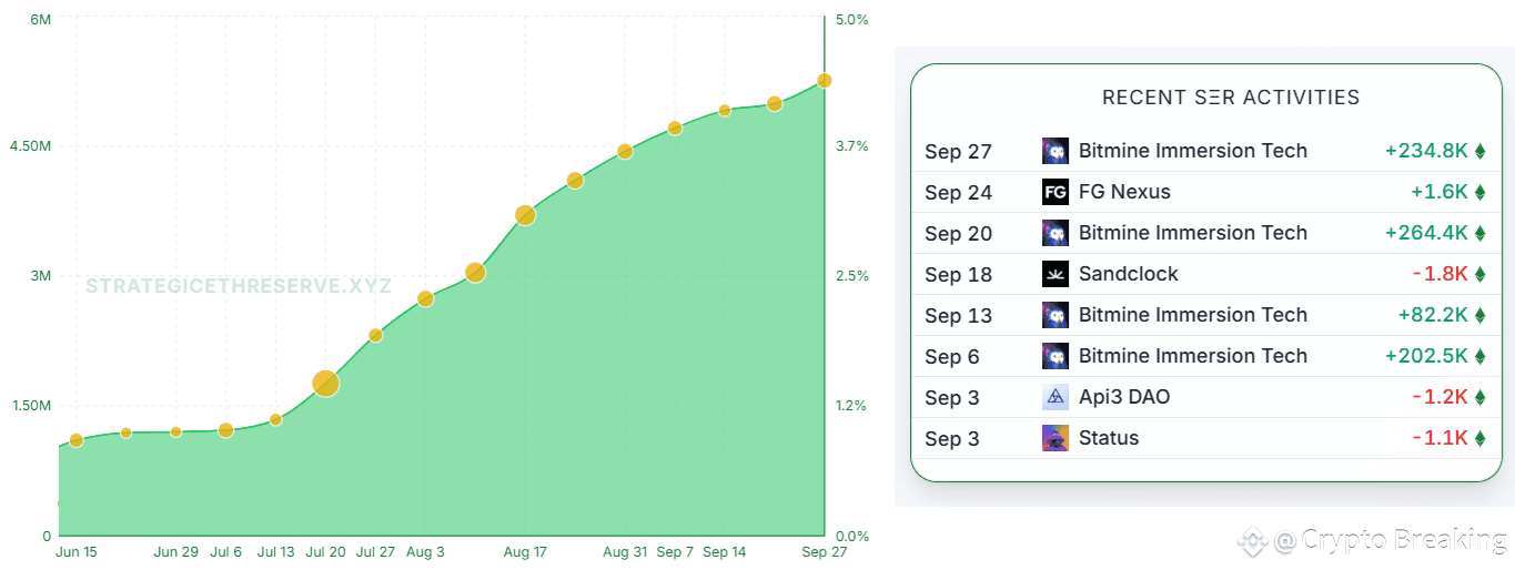 Ether reserves by corporations, ETH. Source: StrategicETHreserve.xyz