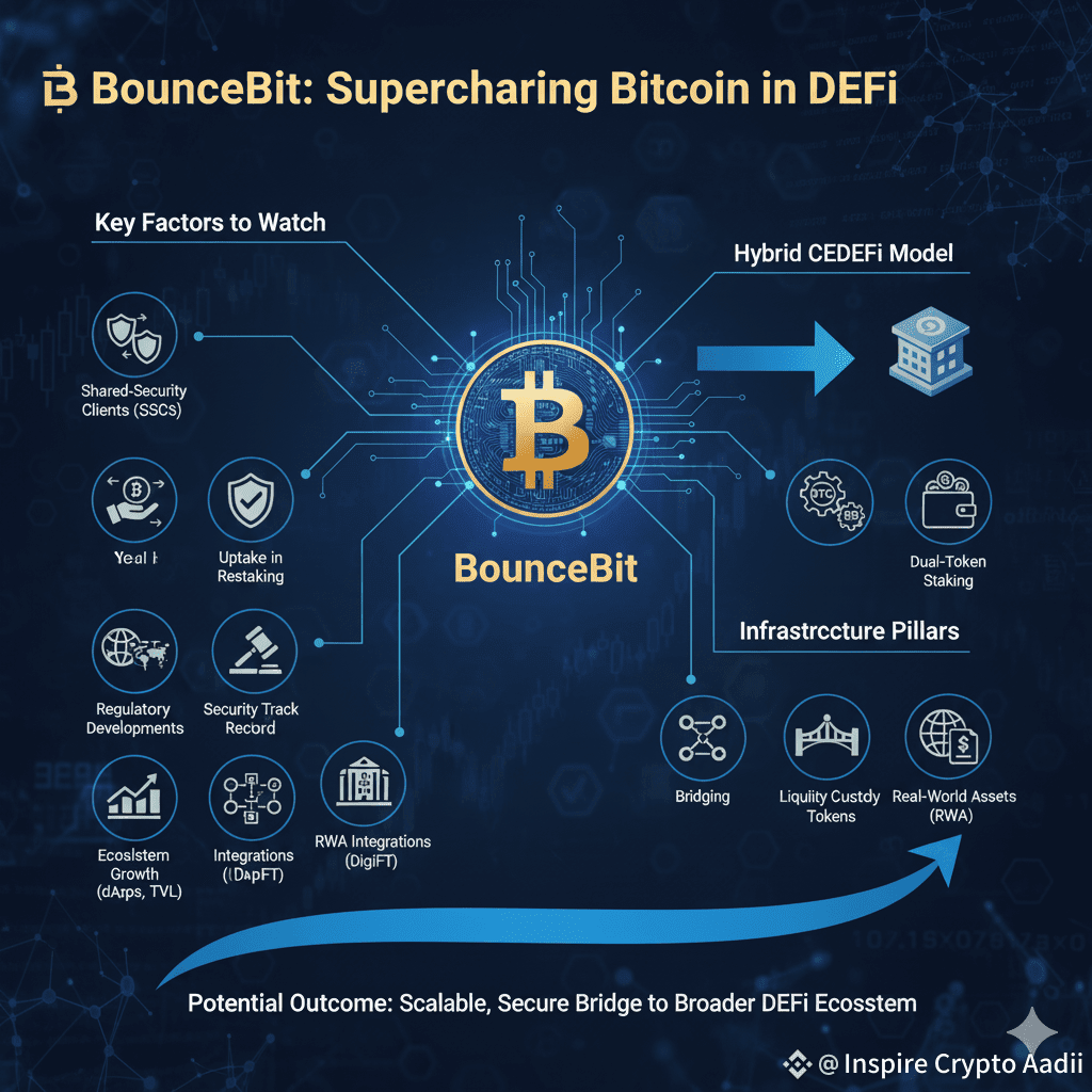 BounceBit is carving out a niche in the Bitcoin + DeFi space by enabling restaking of BTC assets through a hybrid CeDeFi model. Its architecture combines dual-token staking, liquidity custody tokens, bridging, and real-world assets to build what it hopes is a scalable, secure infrastructure. If the risks are well managed, it could be an important bridge between Bitcoin and the broader DeFi ecosystem.