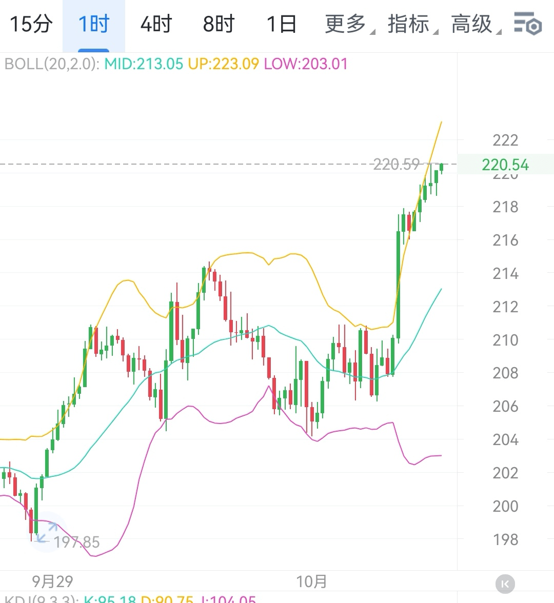 - Support levels and trends: Start a 1-hour level pullback, sequentially focus on the support below, 211 → 205 → 200.