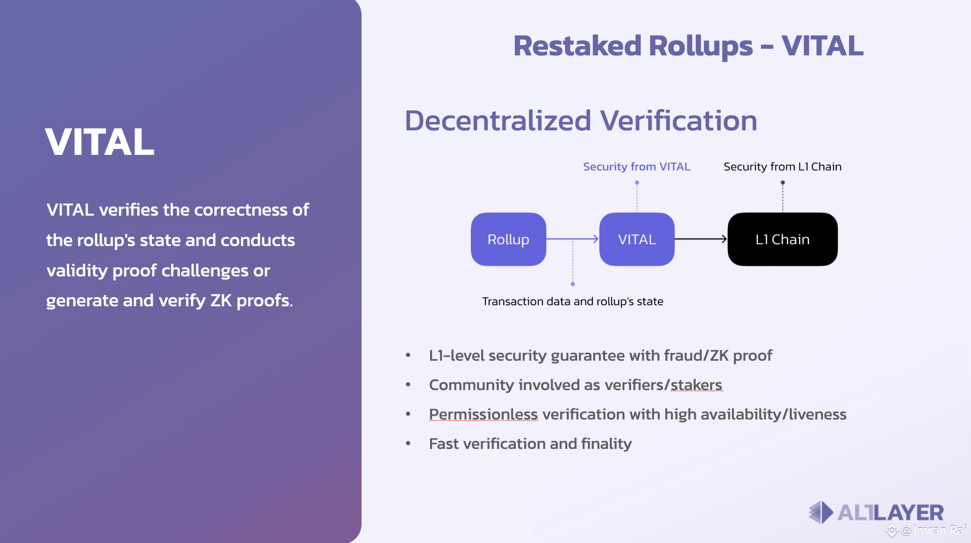 VITAL: An AVS where operators verify blocks and the corresponding states committed by the rollup sequencer and raise fraud proof challenges if necessary.