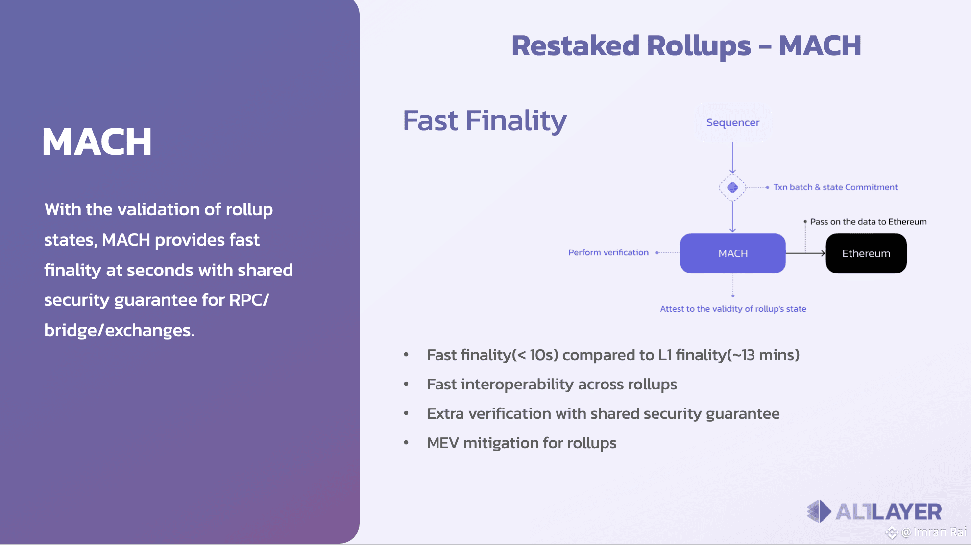MACH: A protocol to provide faster finality to rollups by allowing operators to restake Ethereum-based assets to back any claims on the rollup state.