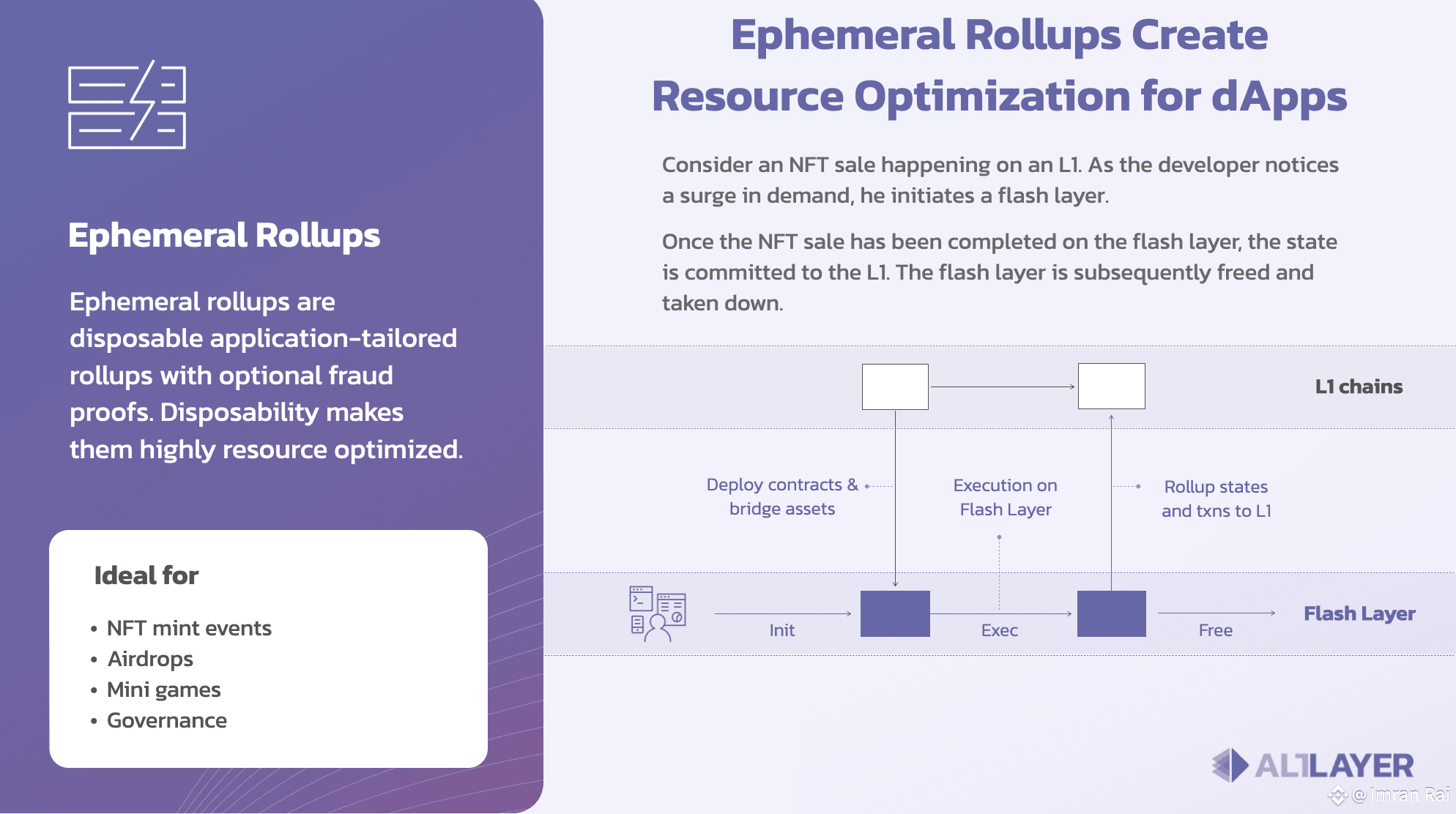 Beyond restaked rollups, one of AltLayer’s most exciting innovations is Ephemeral Rollups. These are temporary, on-demand rollups designed for short-lived but high-traffic applications such as game tournaments, NFT mints, or promotional events. Instead of overburdening Ethereum mainnet or requiring permanent rollup deployments, ephemeral rollups can be spun up quickly, scaled for demand, and disposed of after “end-of-life” settlement on Layer 1. This flexibility creates a new paradigm for blockchain infrastructure: infrastructure as a service, tailored to time-sensitive demand.