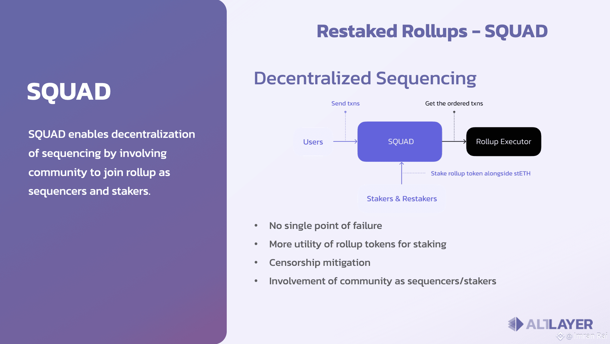SQUAD: Offer decentralized sequencing with economic backing. Decentralized sequencing eliminates short-term liveness concerns, bad MEV, rent extractions and other issues associated with rollups that operate with a single sequencer.