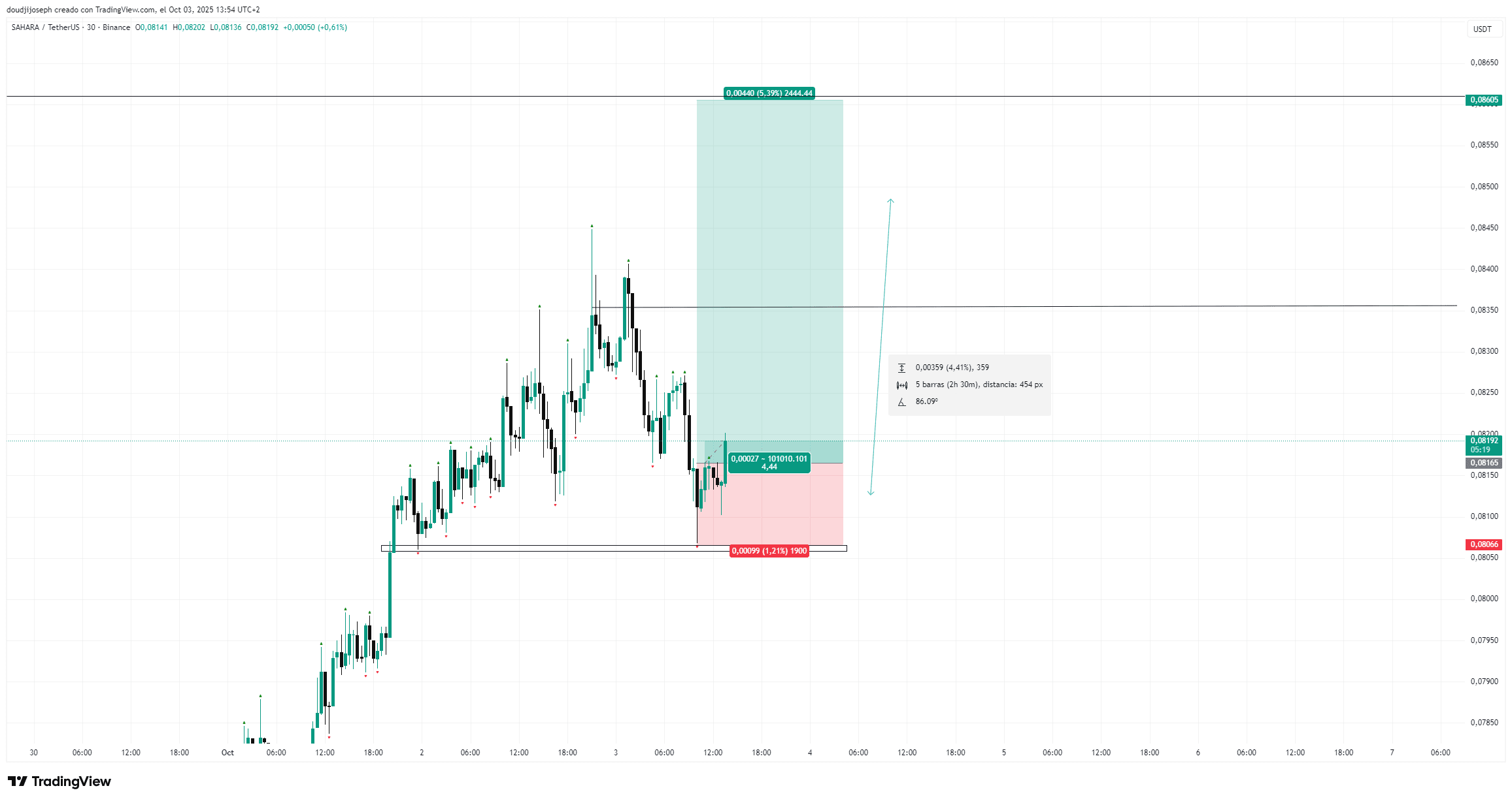 sahara apparently is going to continue rising it will hit the point 0.08360 even at 0.08603 which is a good opportunity, but we must wait for an exact confirmation.