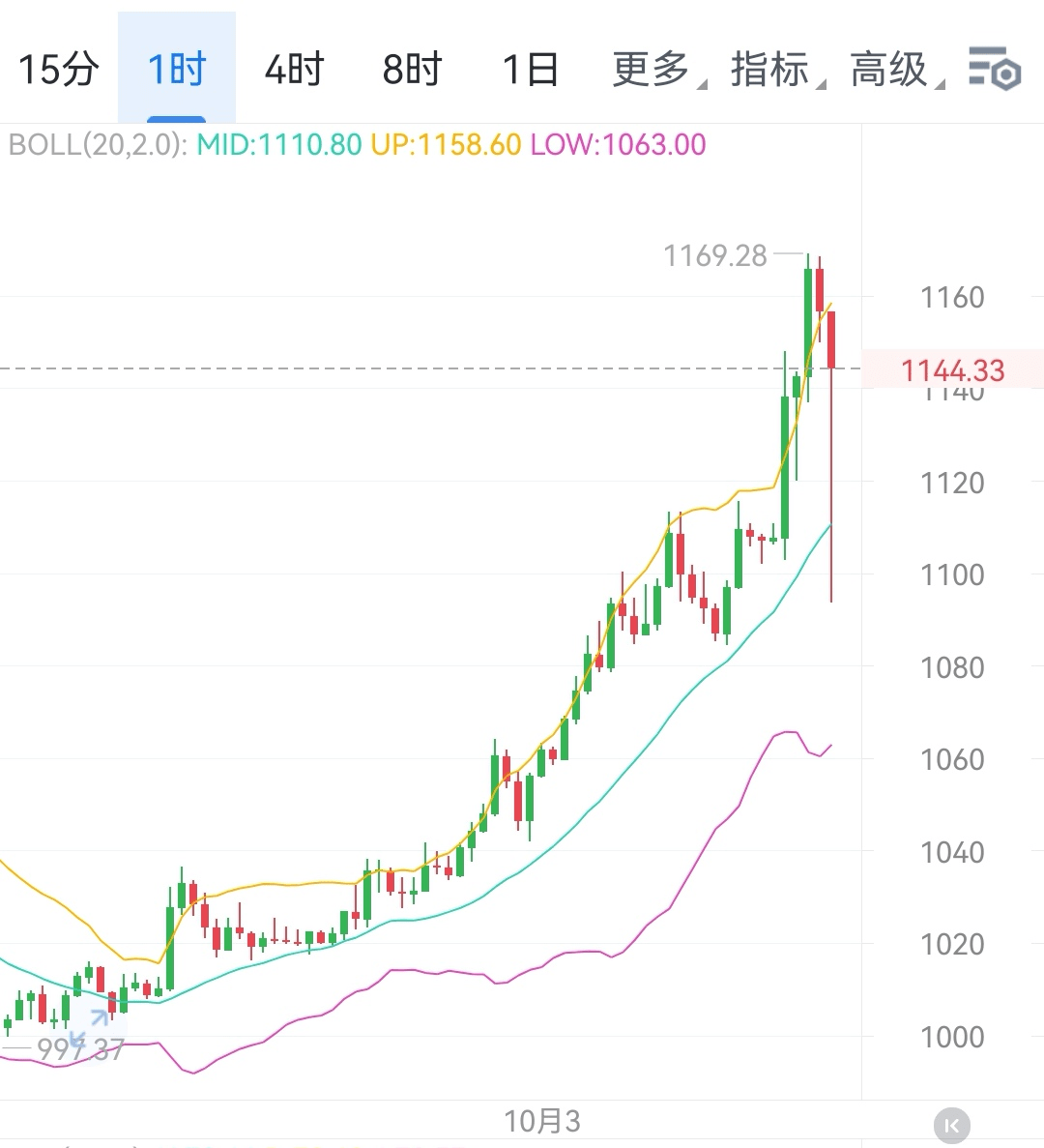 2. Below the watershed (1-hour closing breaks below 1120, enter a 1-hour level pullback)
