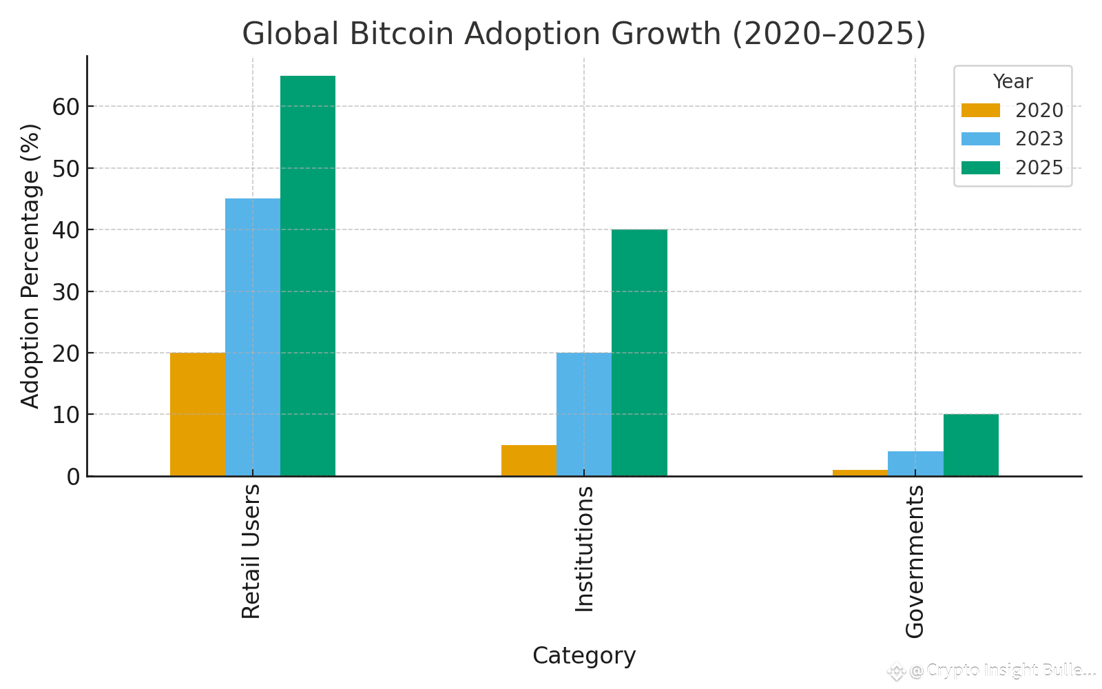 Recent studies show that 65% of retailers have adopted it, and institutional participation has grown four times since 2020. Some governments are even trying out Bitcoin-based settlement systems and blockchain-powered national payment systems.