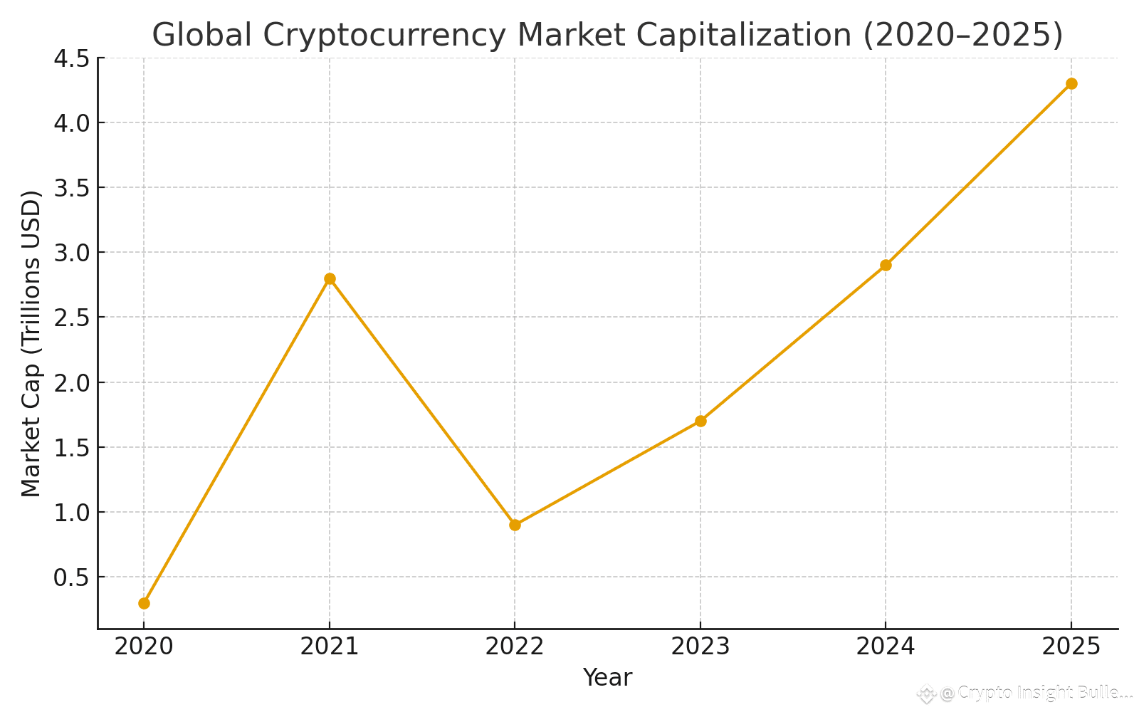 The market for cryptocurrencies has come a long way since it was first full of doubt and speculation. What started out as a small experiment with digital money has grown into one of the most important parts of the world's financial system. Between 2020 and 2025, the total value of all cryptocurrencies on the market grew by an incredible 1,300%, from $300 billion to more than $4.3 trillion.